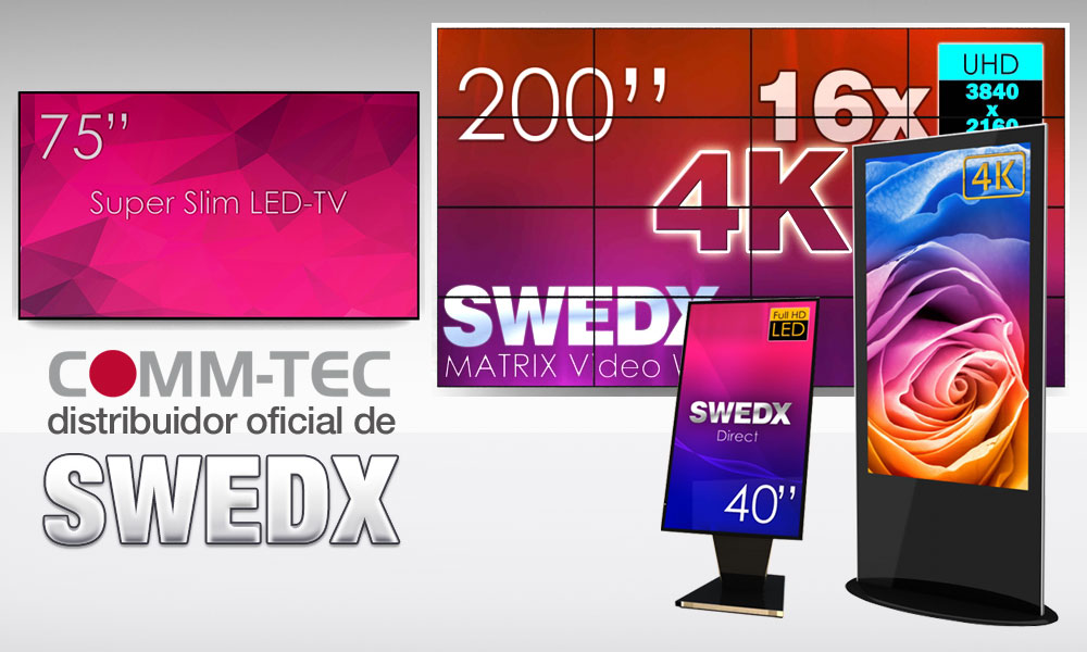 COMM-TEC anuncia el acuerdo de distribución para España y Portugal de la marca SWEDX. Gracias a este acuerdo, COMM-TEC comercializará para el mercado español y portugués la gama de Displays para el mercado profesional.