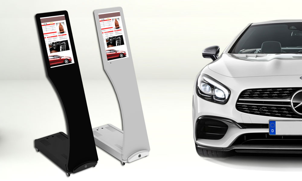 lo que aumenta el interés de sus productos y servicios. La serie SIGNO puede ser alimentada por batería, convirtiéndolo en un dispositivo móvil, ideal para ser utilizado en concesionarios de automóviles, ferias, al aire libre, centros comerciales, etc. La batería de 16 Ah (disponible como accesorio) tiene un tiempo útil de hasta 24 horas. Otros accesorios inteligentes disponibles para Touch Signo son el detector de movimiento, que permite activar la pantalla cuando se detecta presencia, permitiendo un ahorro considerable en la duración de la batería. SWEDX Touch Signo es muy ligero (sólo 8,5 kg) y está equipado con ruedas que permiten su desplazamiento fácil y sencillo.